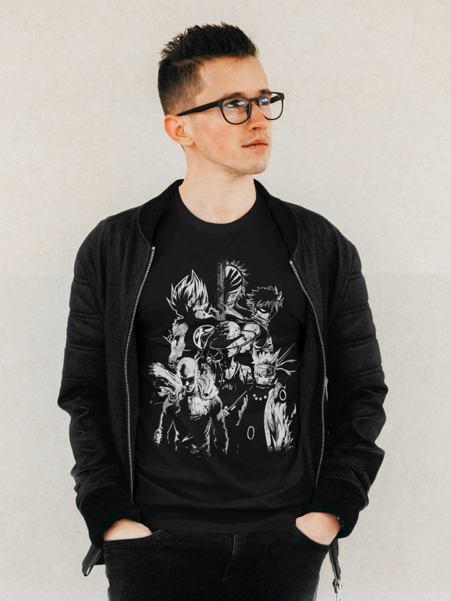 This 100% cotton T-shirt is printed using the direct to garment technique, using non-toxic, water-based inks. This classic shortsleeved t-shirt features the following anime heroes: Naruto from Naruto - Goku from Dragonball Z - Luffy from One Piece - Saitama from One Punch Man - Ichigo from Bleach and Natsu from Fairy Tail.