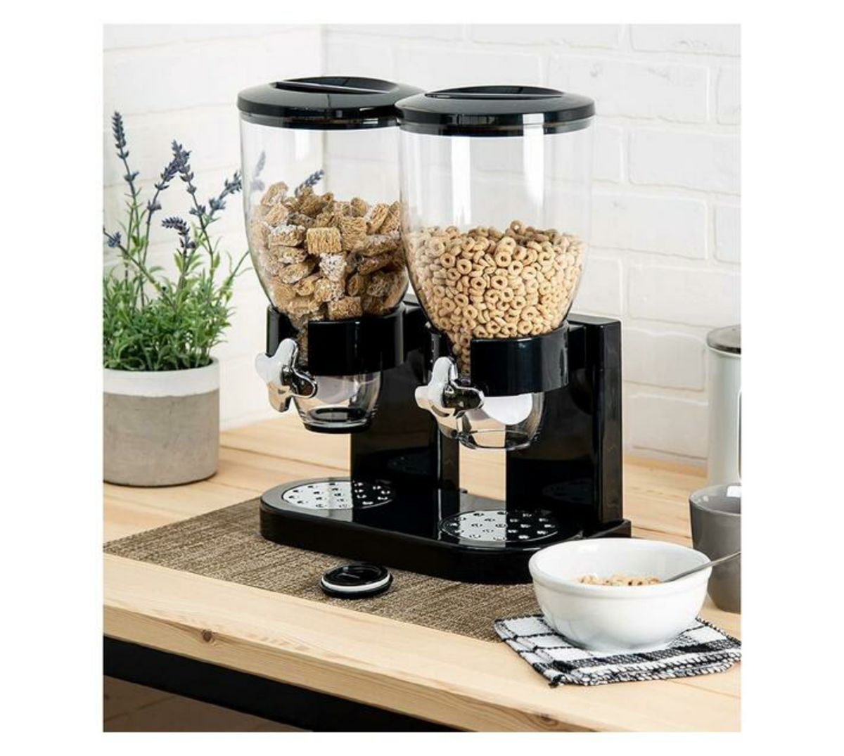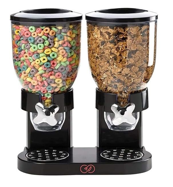 The portion-control system uses a soft, flexible Paddle wheel that won't crush cereal, reduces spills, and dispenses a measured amount with each twist.