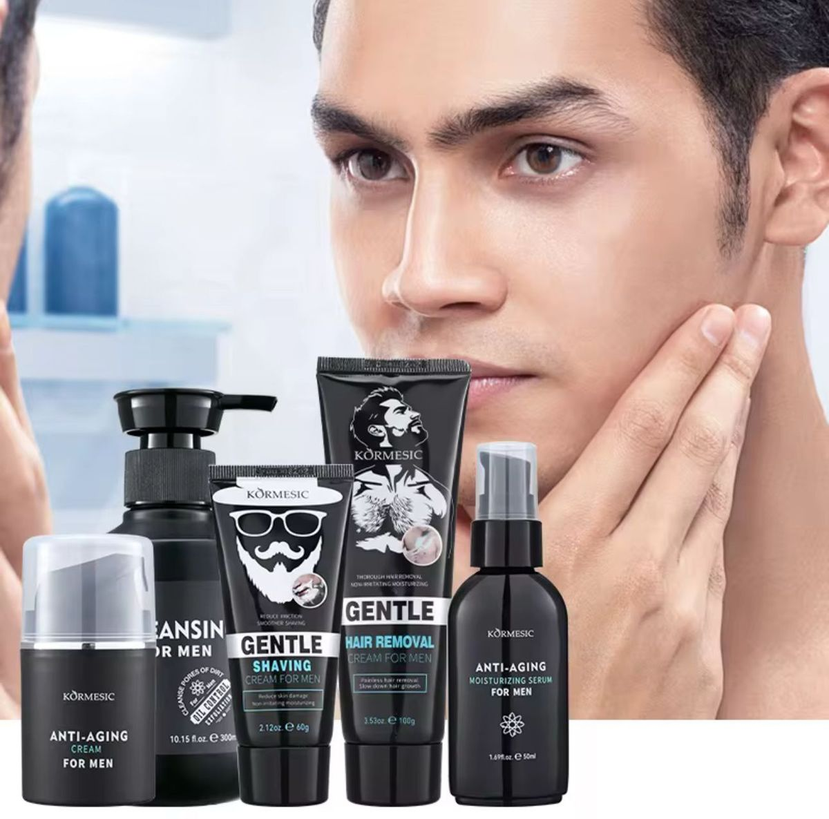 The Kormesic Anti-Aging Cleanser, Serum, and Cream Kit is formulated with a blend of effective, skin-nurturing ingredients designed to rejuvenate, hydrate, and protect your skin. Here's an overview of the benefits based on its key ingredients: