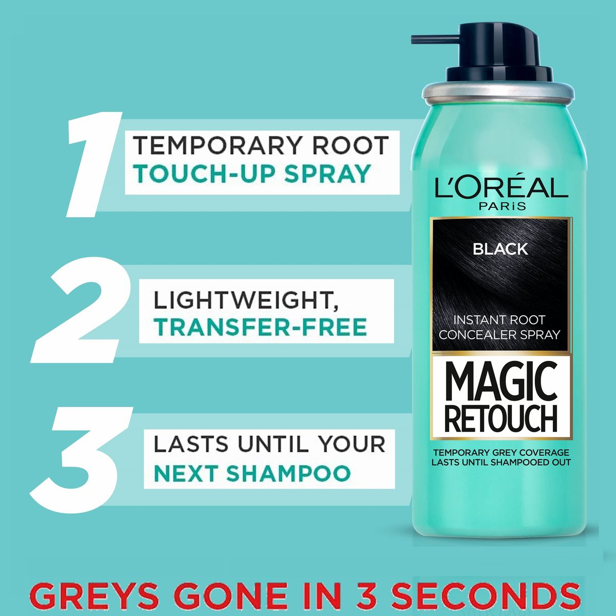 Instant root concealer spray. Conceals greys and roots in just one quick spray. When and where you need it!