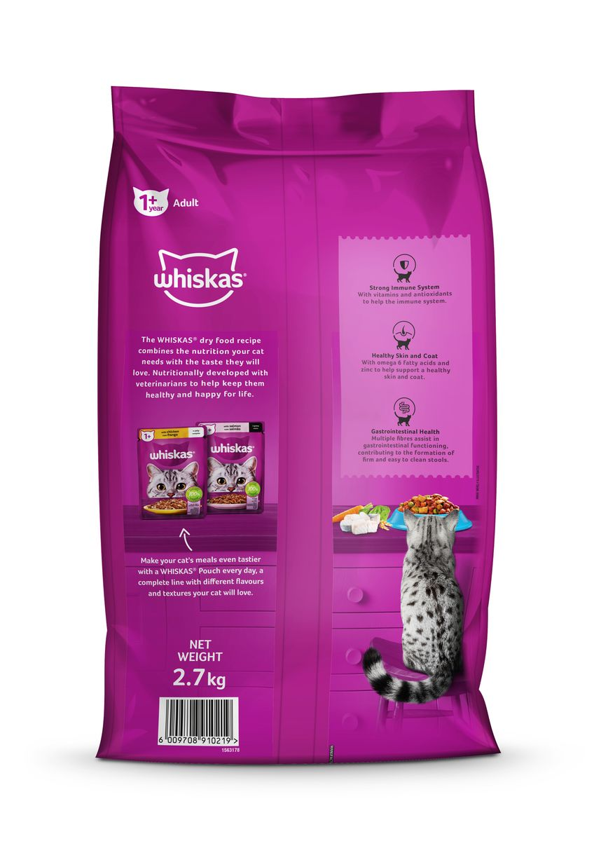 Our delicious Whiskas adult dry cat food contains an optimal balance of vitamins and minerals to help you provide the best possible care for your adult cat.